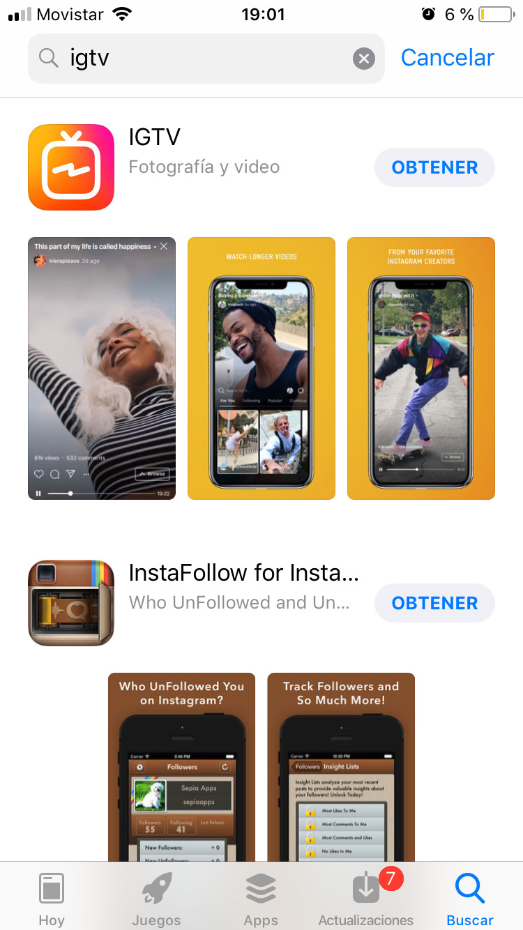 - Descarga la aplicación de IGTV y loguea tu perfil de Instagram, funciona para perfiles personales y empresariales.