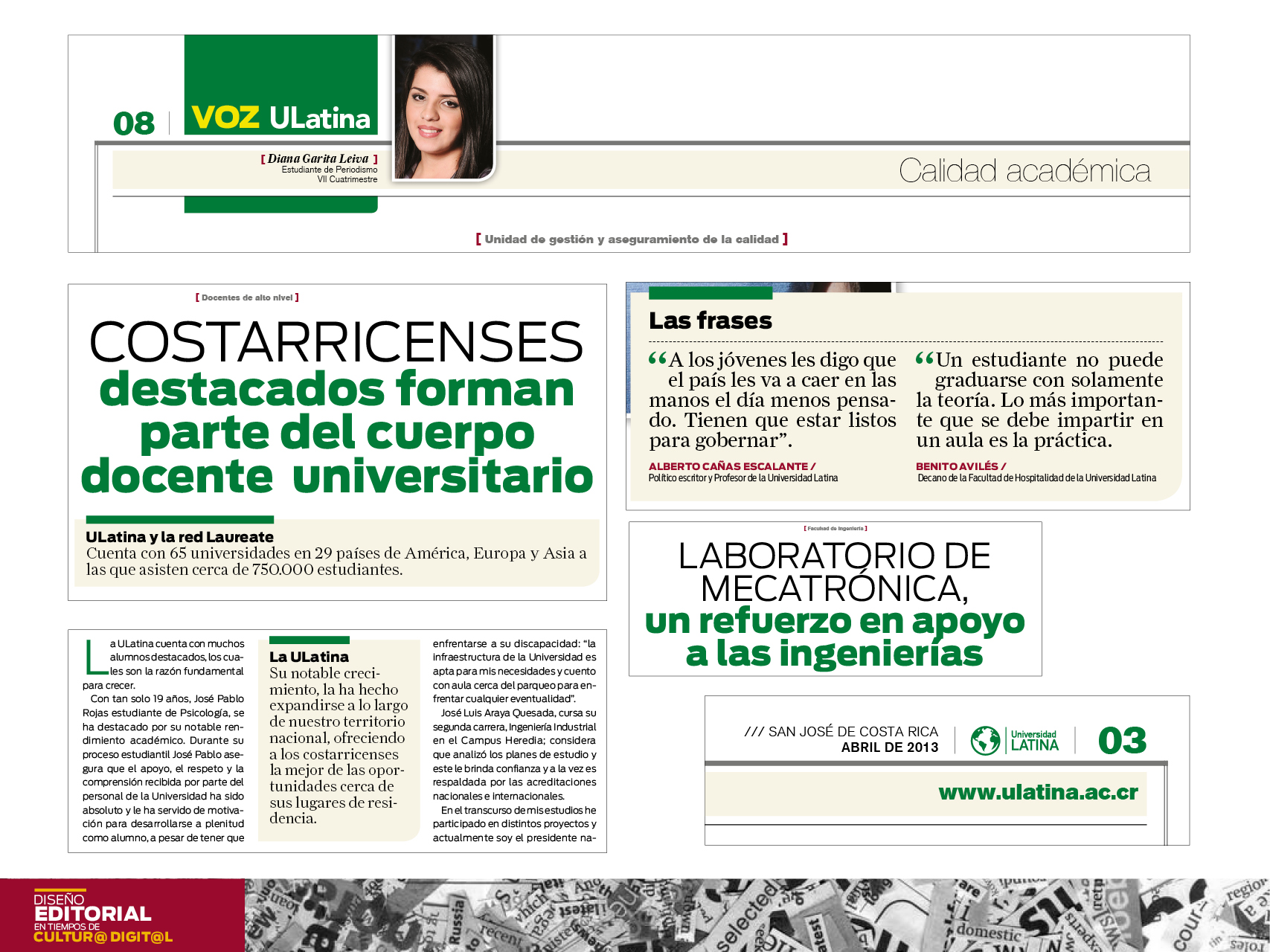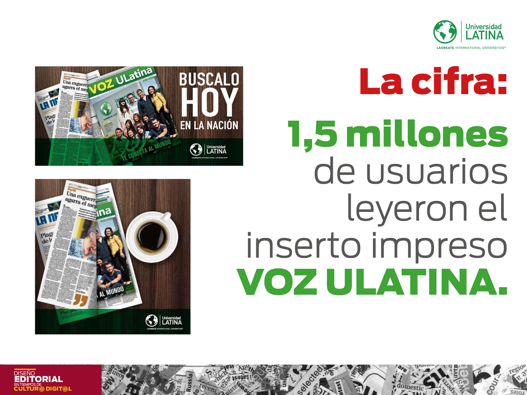 Es importante señalar que cada medio impreso es leído por tres personas, lo que lleva a resumir que al circular con 500 mil ejemplares a nivel nacional en Costa Rica, 1,5 millones de usuarios leyeron el inserto VOZ ULATINA, en el día de mayor circulación.
