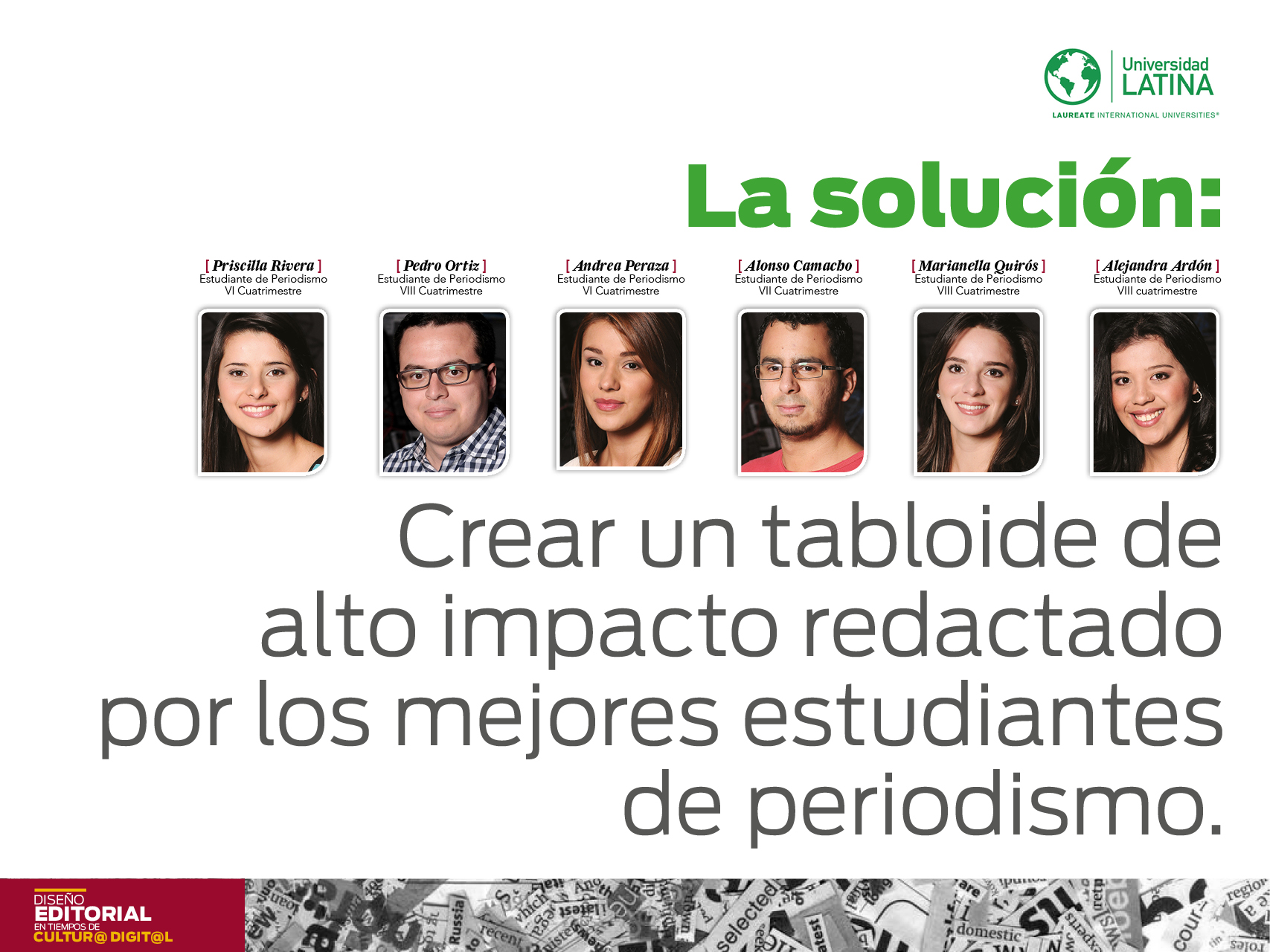 Posterior a la investigación técnico gráfica, presenté una propuesta donde sugería desarrollar un producto impreso en tiempos digitales. Se que puede sonar a descabellado pero sí la idea principal fue diseñar una inserto de tamaño tabloide, escrito por los estudiantes mas destacados de la carrera de periodismo donde se recogería el trabajado que hace cada una de sus facultades.