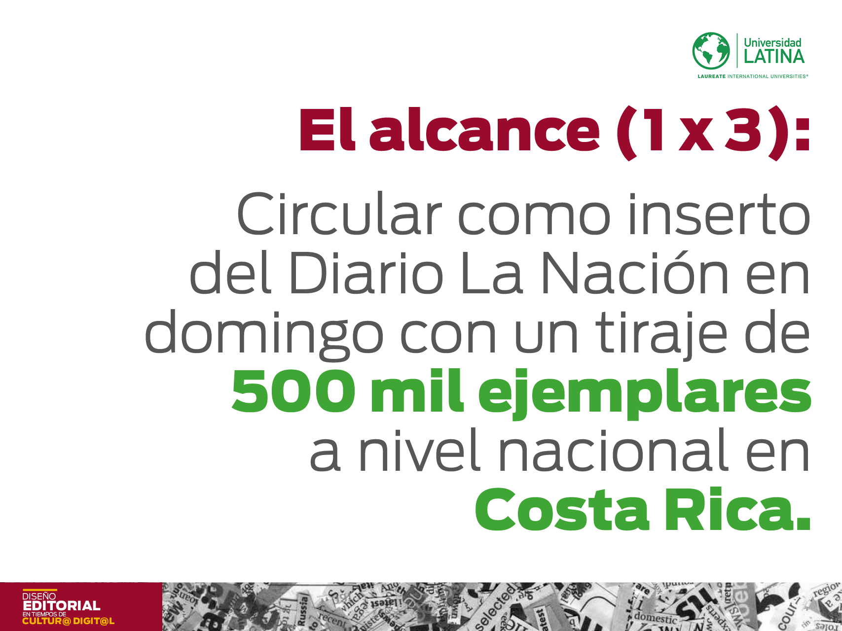 Este producto tenía como destino final ser parte de la edición dominical de unos de los mayores diarios de circulación en Costa Rica como es La Razón.