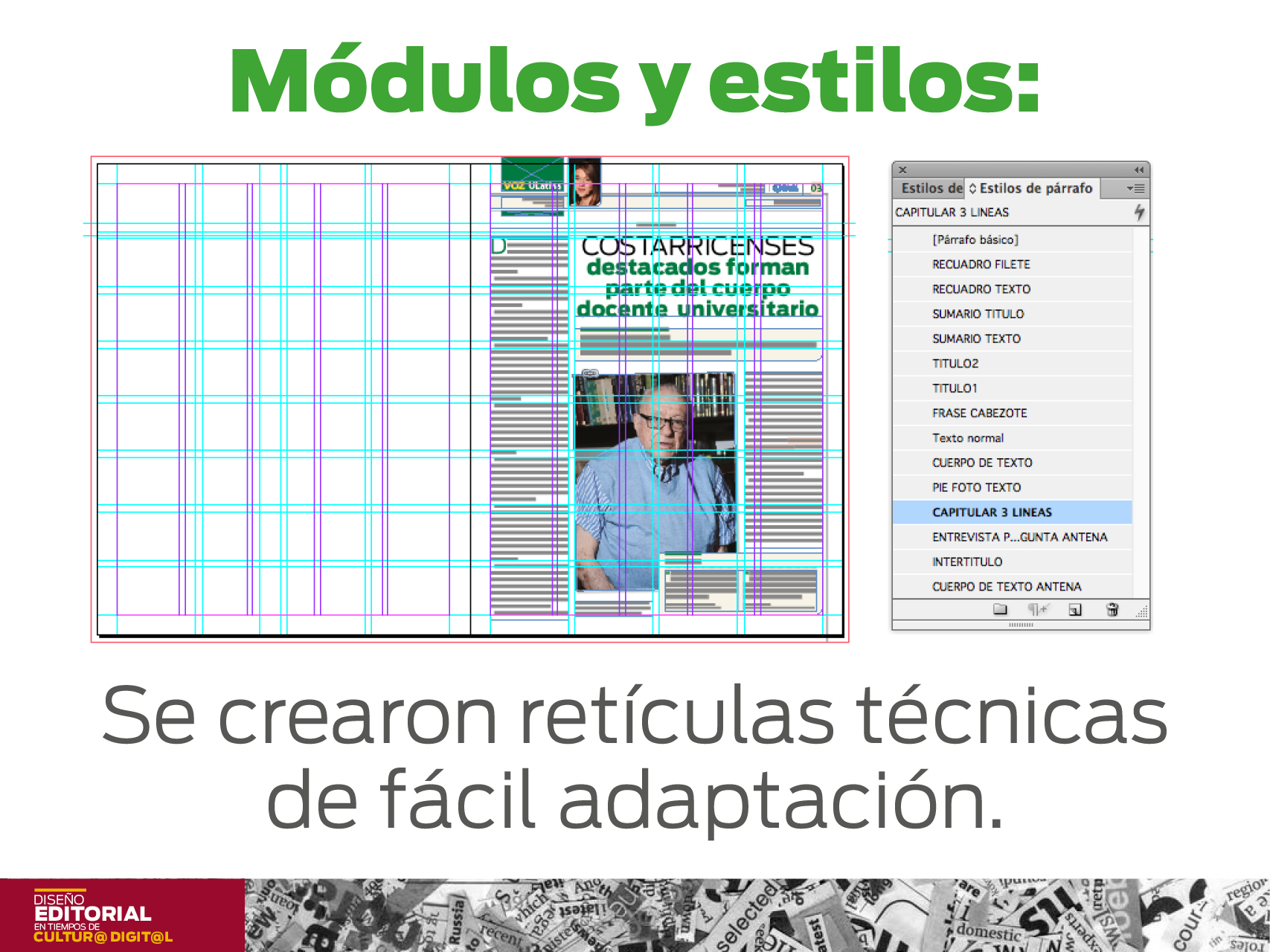 Se desarrolló una metodología de trabajo, tanto para la maquetación y posterior flujo de trabajo entre el equipo de diseño editorial y los periodistas.